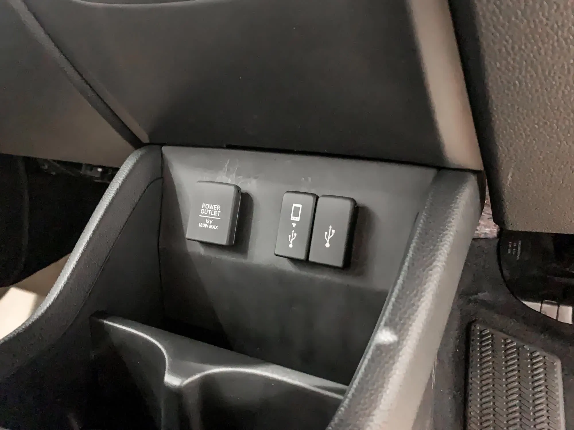 Hộc chứa đồ trung tâm đặt cổng tẩu 12V và hai cổng sạc USB