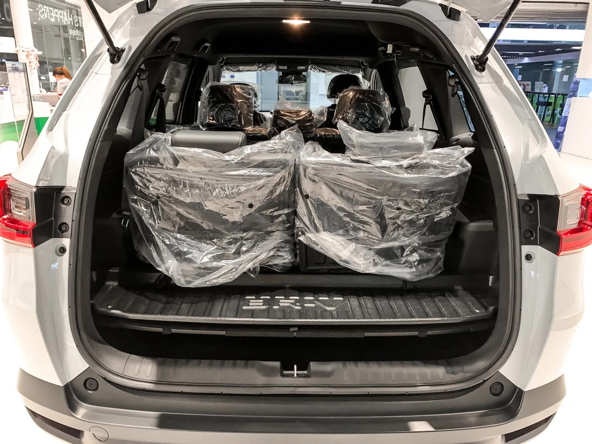 Dung tích cốp của BR-V G khá khiêm tốn khi mở hàng ba. Cửa cốp vẫn đóng mở cơ. Khoang hành lý vừa đủ cho những chuyến du lịch với thể tích 280 lít và được mở rộng lên đến 500 lít nếu gập hàng ghế thứ 3.