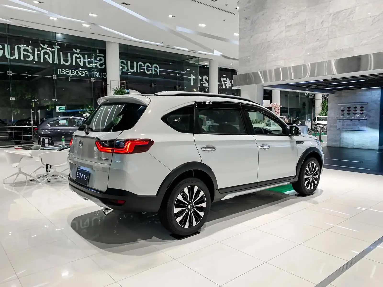 Thường các mẫu xe khác trong gia đình sẽ có dải chrome chạy ngang lô-gô, ngôn ngữ đôi cánh của Honda, nhưng BR-V G thì không, có lẽ dải đèn phanh chính giữa đã thay thế chức năng nhận diện thiết kế của phần đuôi xe. Thiết kế cản va hai bên ở phần đuôi xe tương tự như phần đầu xe, móc chữ C và hướng vào trong.